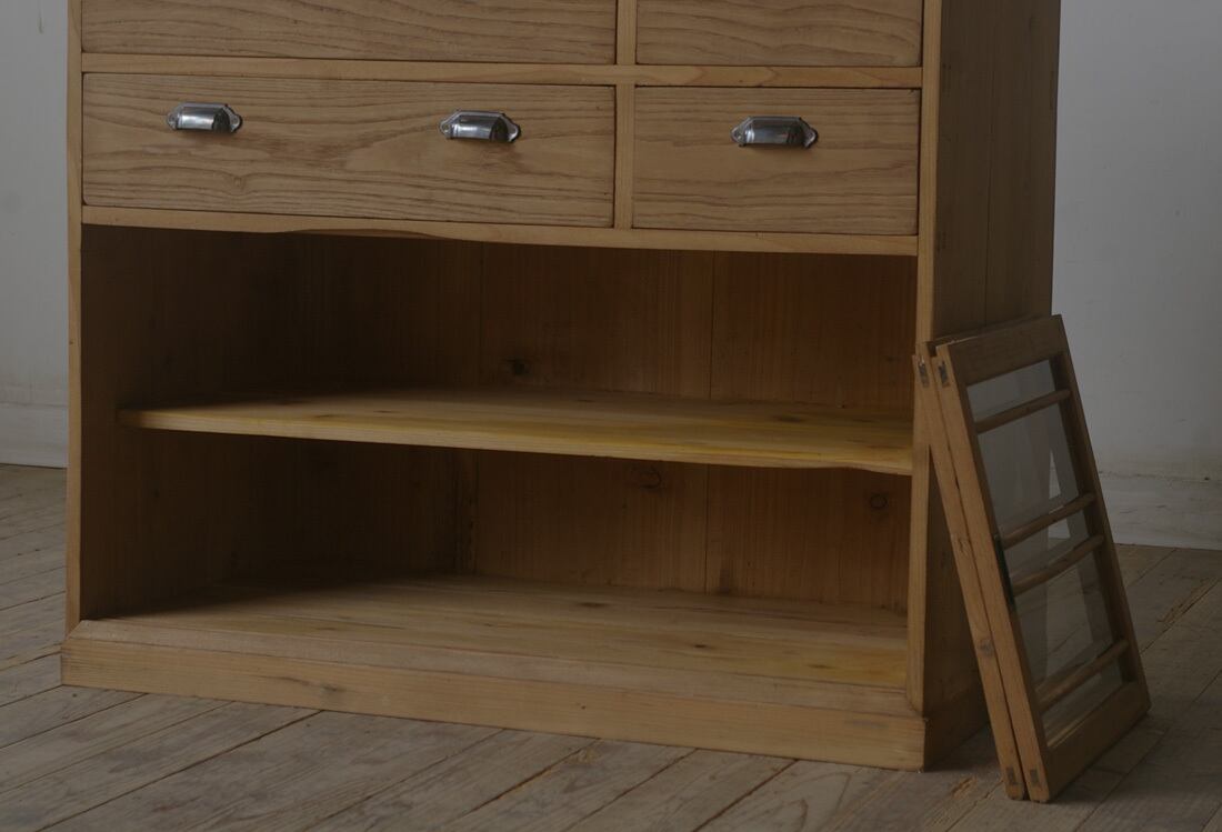 ガラス戸付き引き出し10杯古いチェスト YZ2535