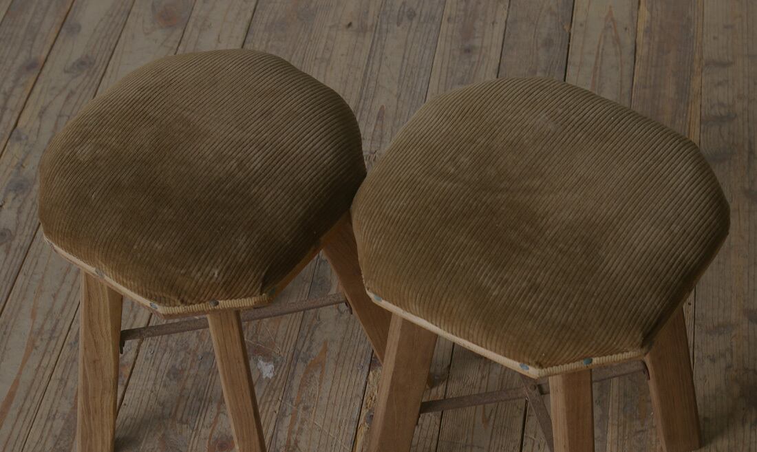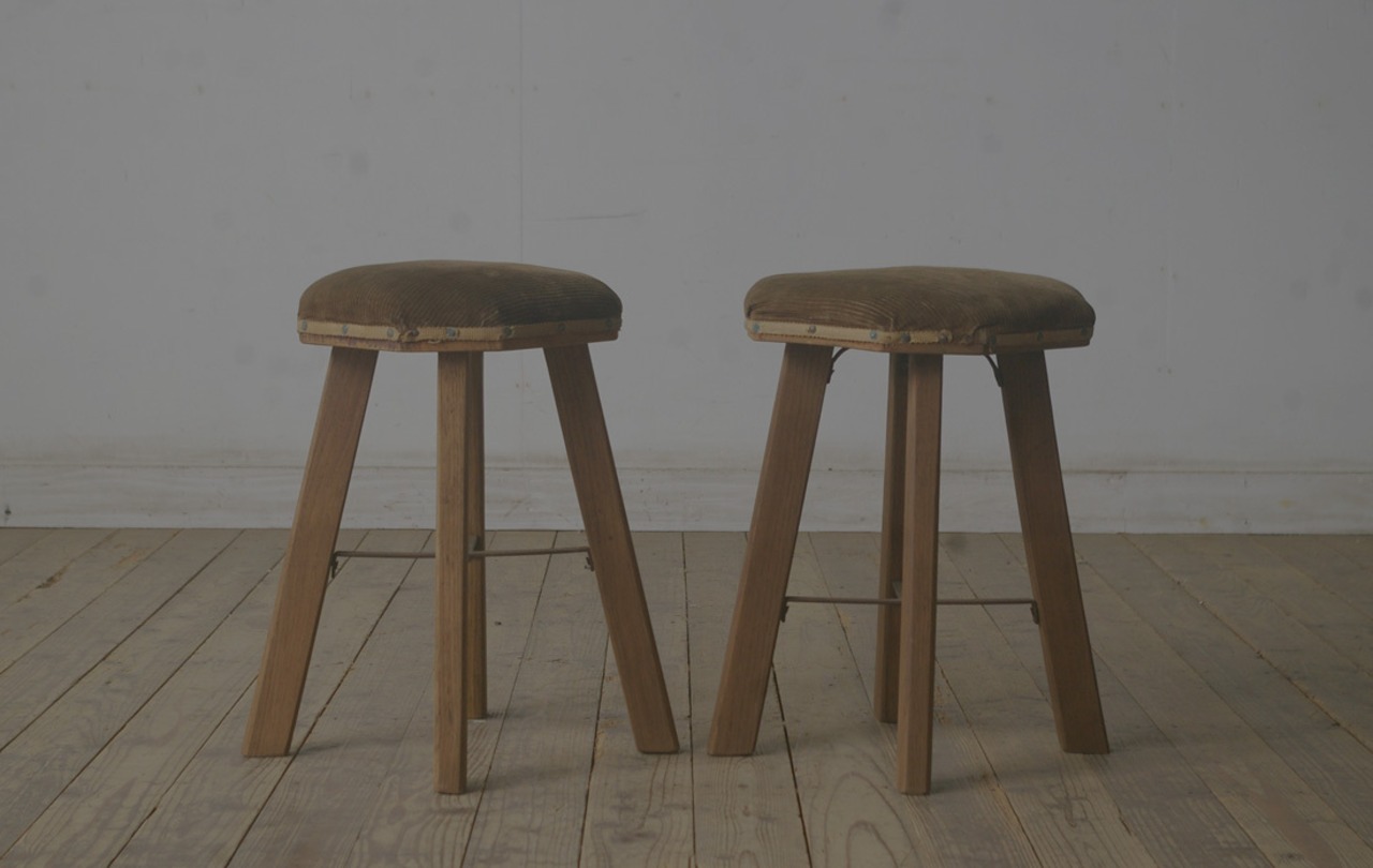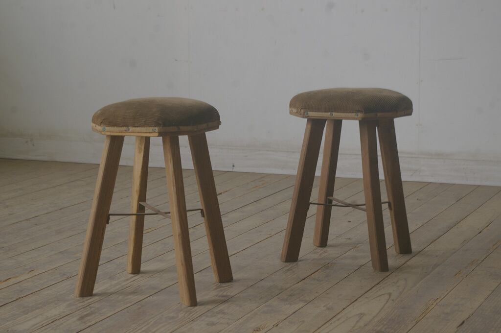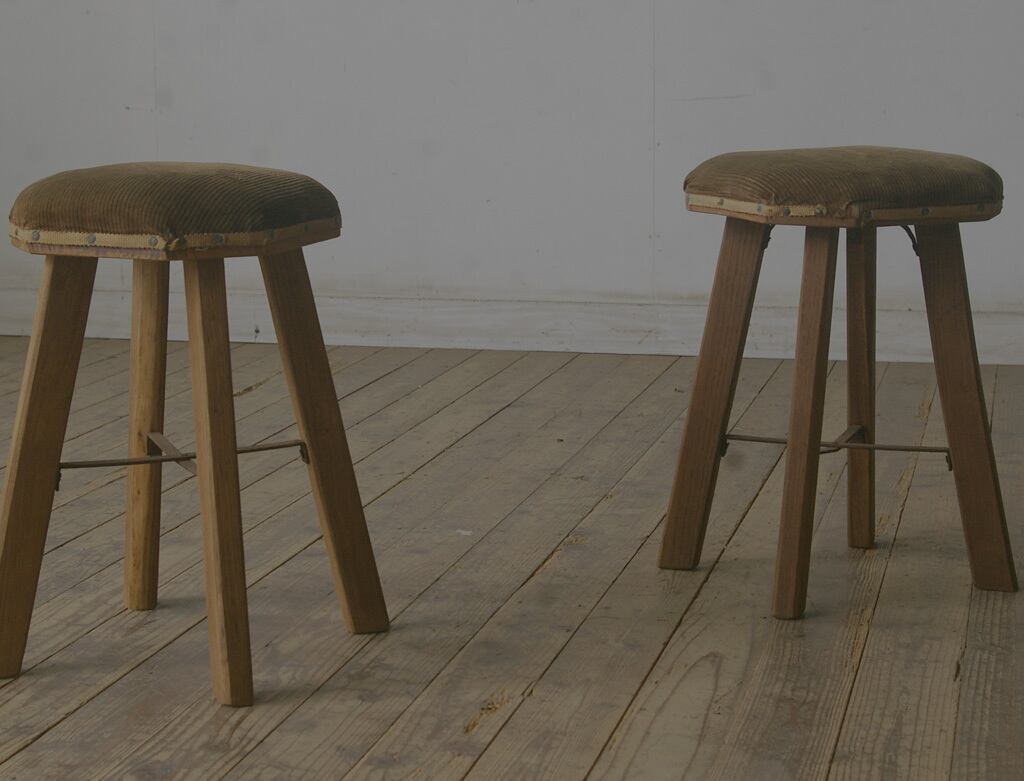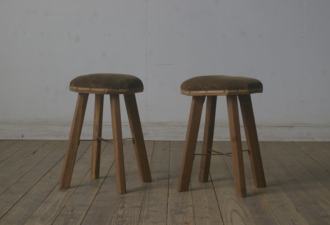 ぼってりとしたシンプルなデザインでとても存在感のあるアンティークスツール2脚セットです。