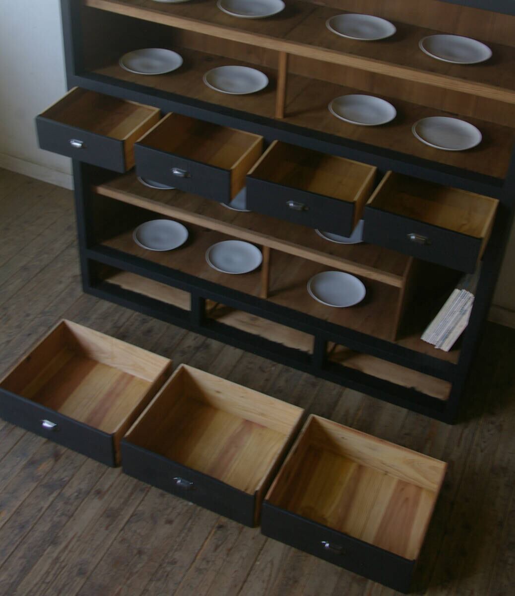 店舗やカフェ、ギャラリーなどでの什器としてやご自宅でのコレクションケースや食器棚、本棚などに。