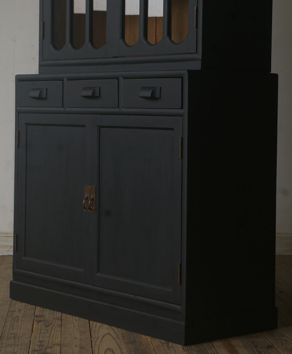 引き出し3杯重ね古いガラス観音扉キャビネット YZ2563