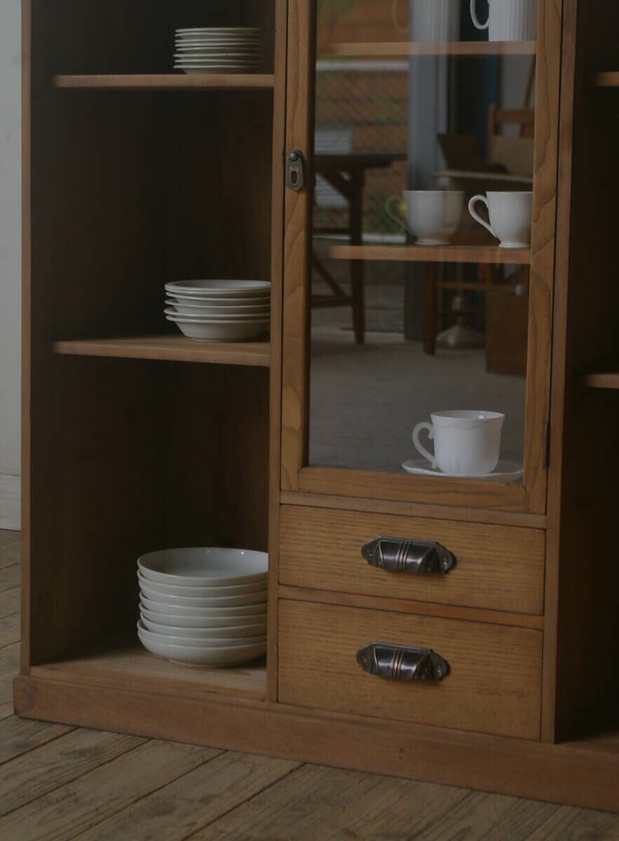 店舗やカフェ、ギャラリーなどでの什器としてやご自宅でのコレクションケースや食器棚、本棚などに。