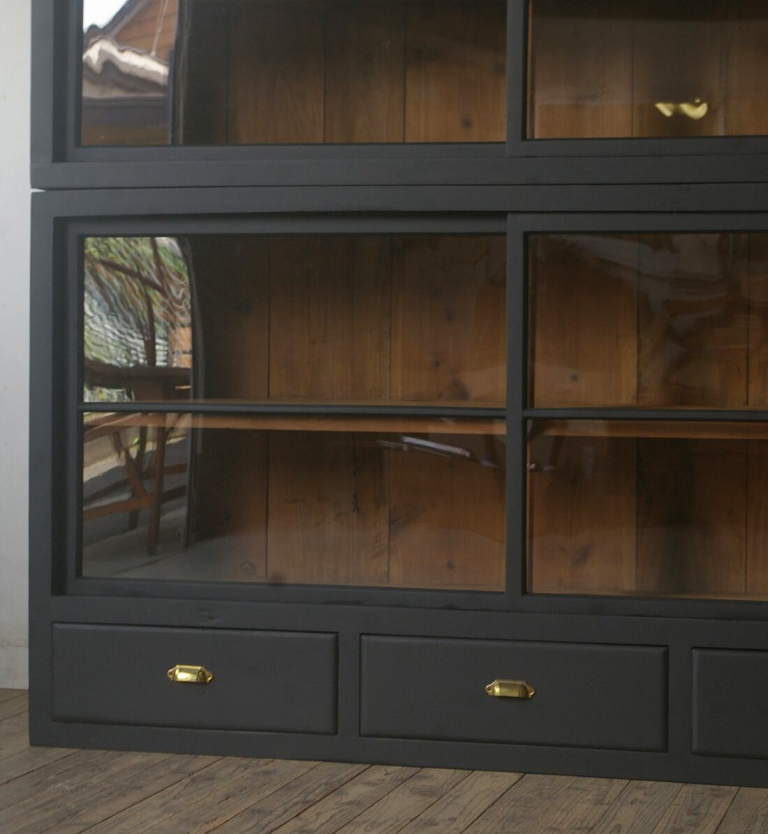 とても存在感のあるアンティーク重ね大きなガラス戸棚です。