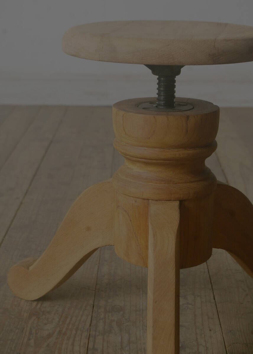 造りも良く、とても存在感のあるアンティーク回転丸スツールです。