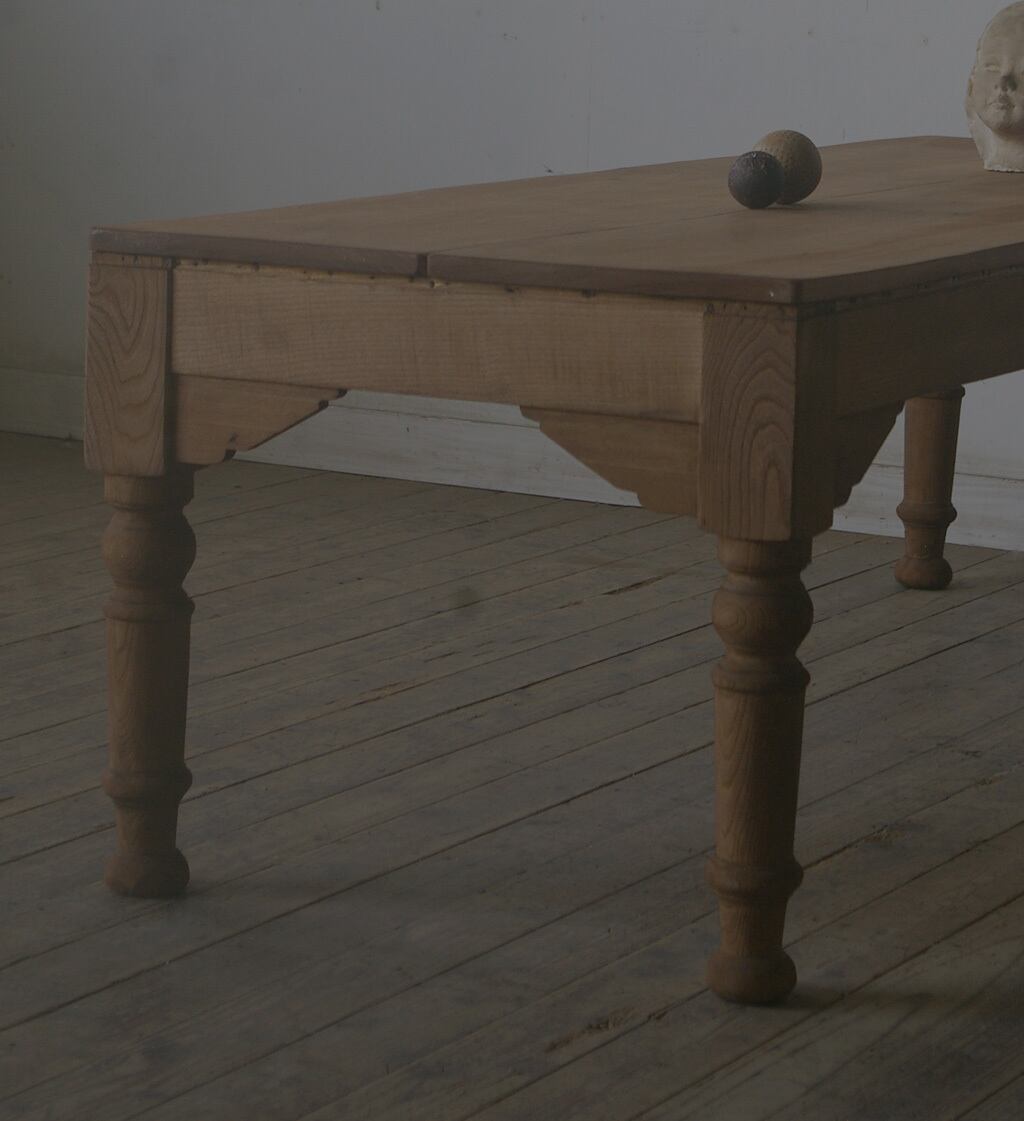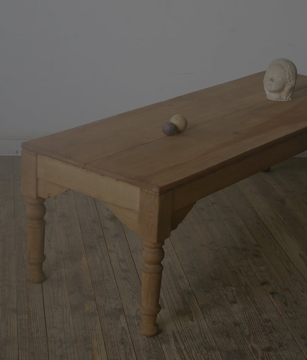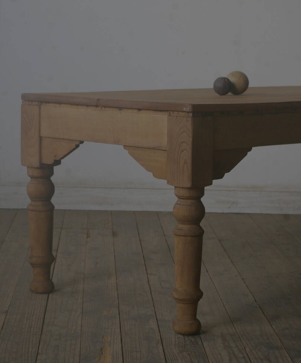 重厚な4本の脚と古い無垢材の綺麗な木目がとても雰囲気の良い、アンティーク横長ローテーブルです。