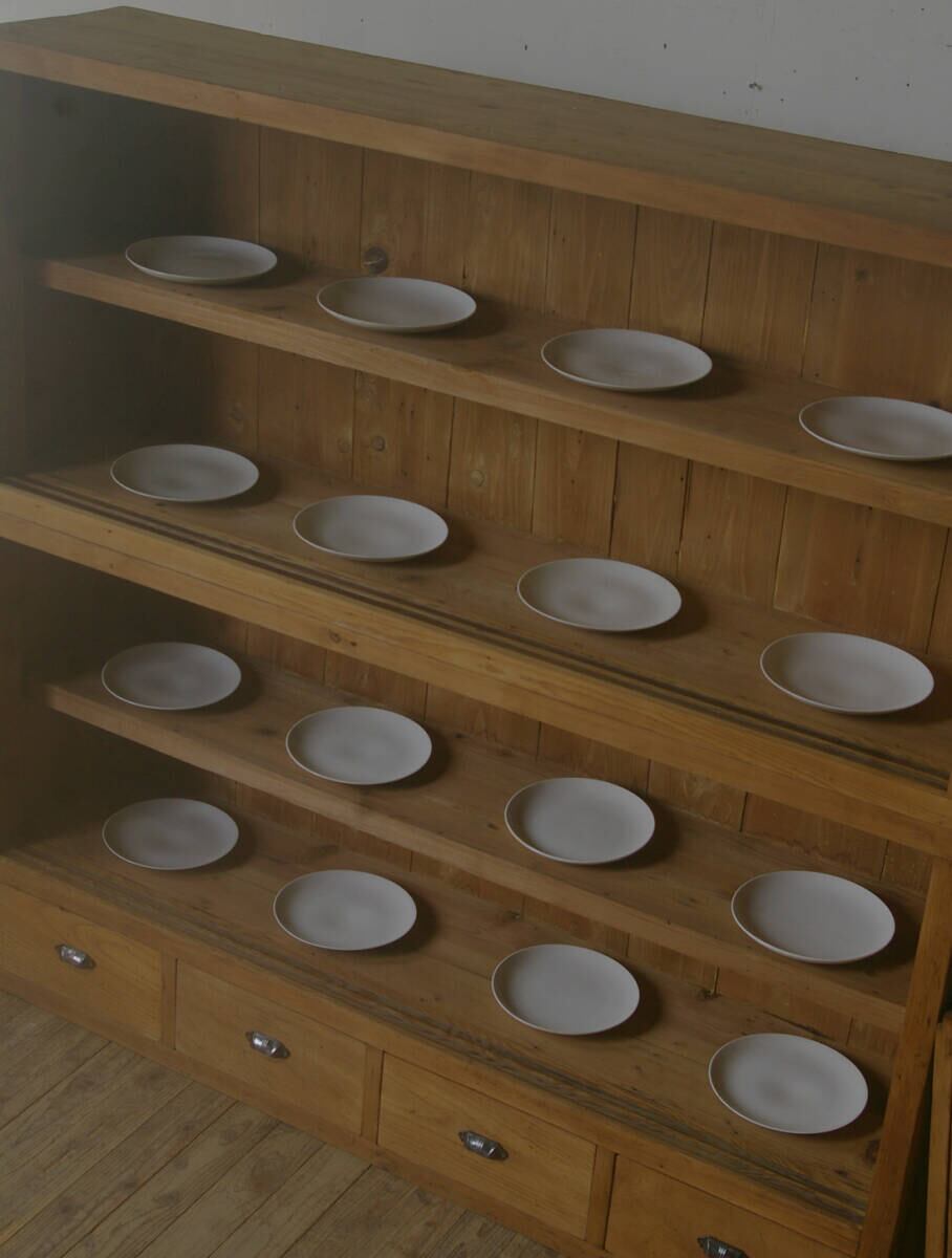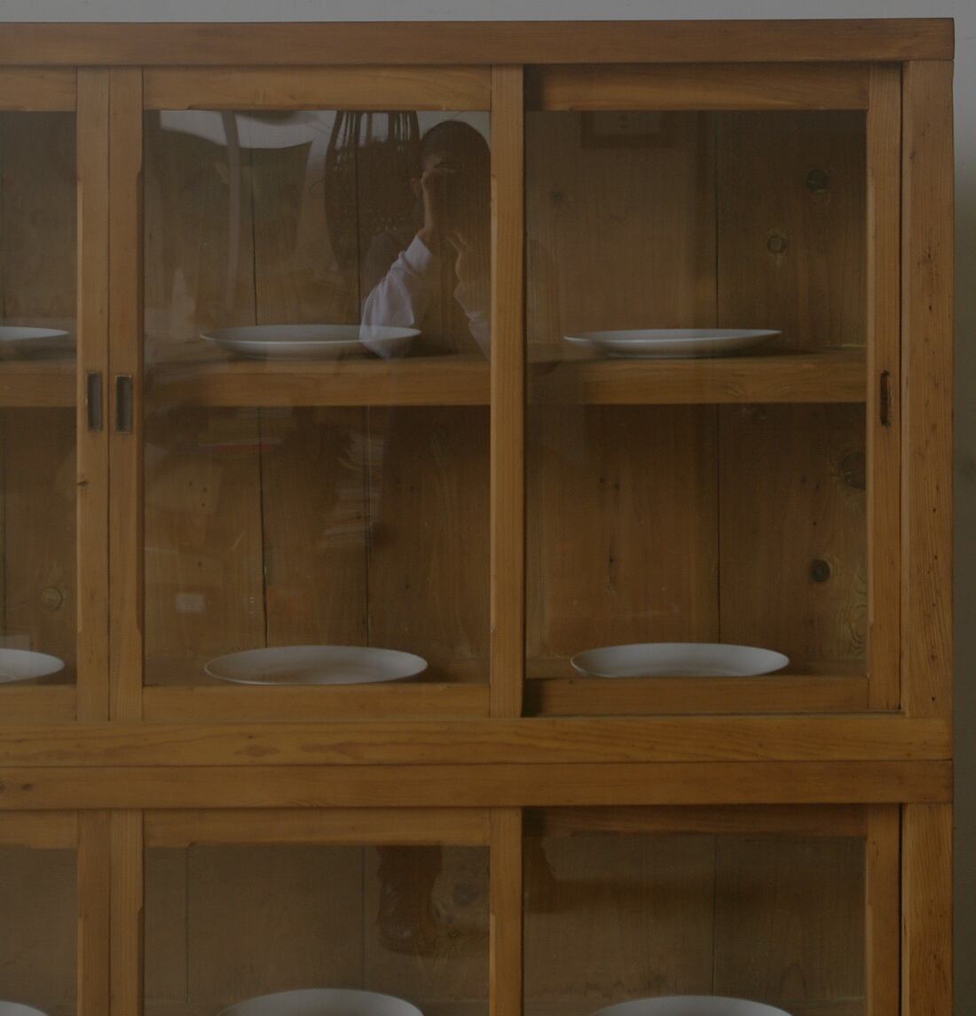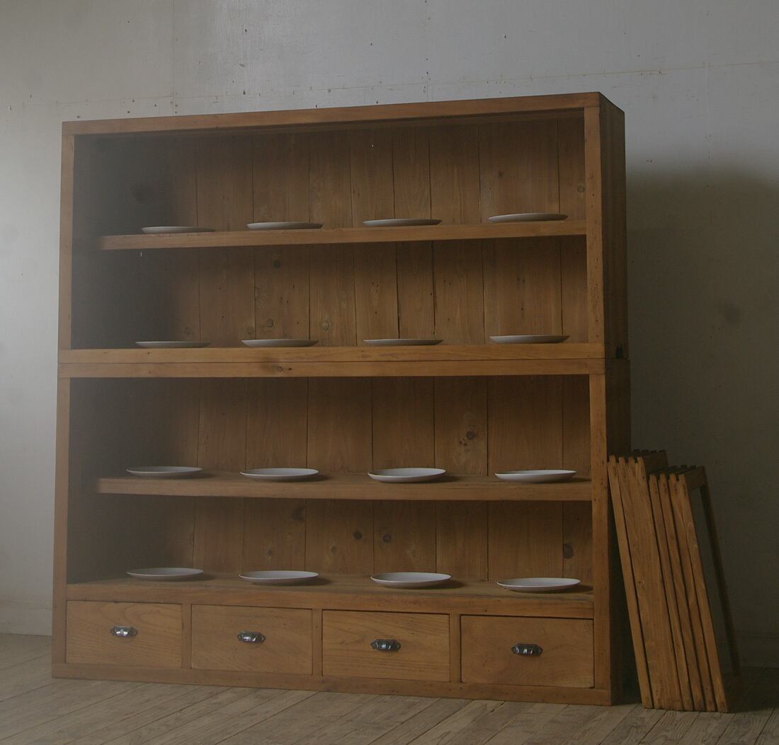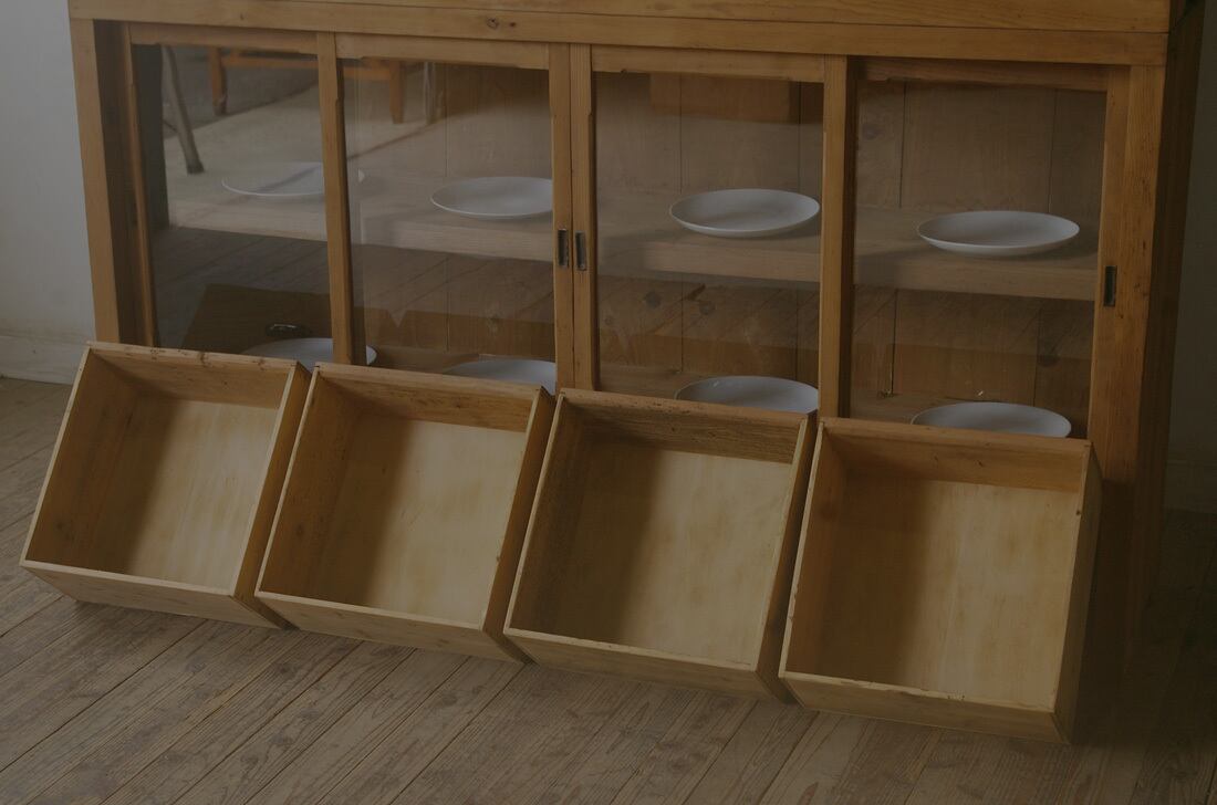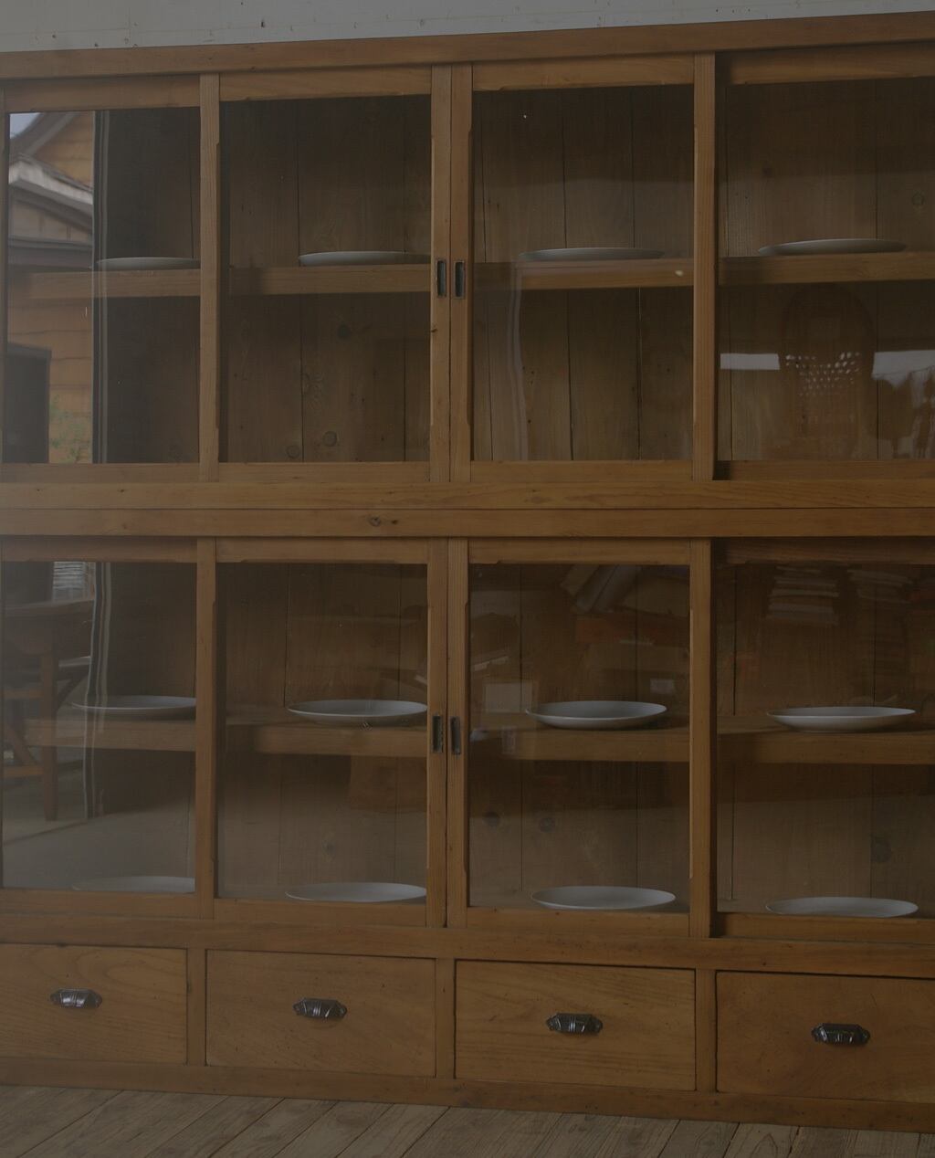 店舗やカフェ、ギャラリーなどでの什器としてやご自宅でのコレクションケースや食器棚、本棚などに古い物ですので細かい傷や汚れはございます。