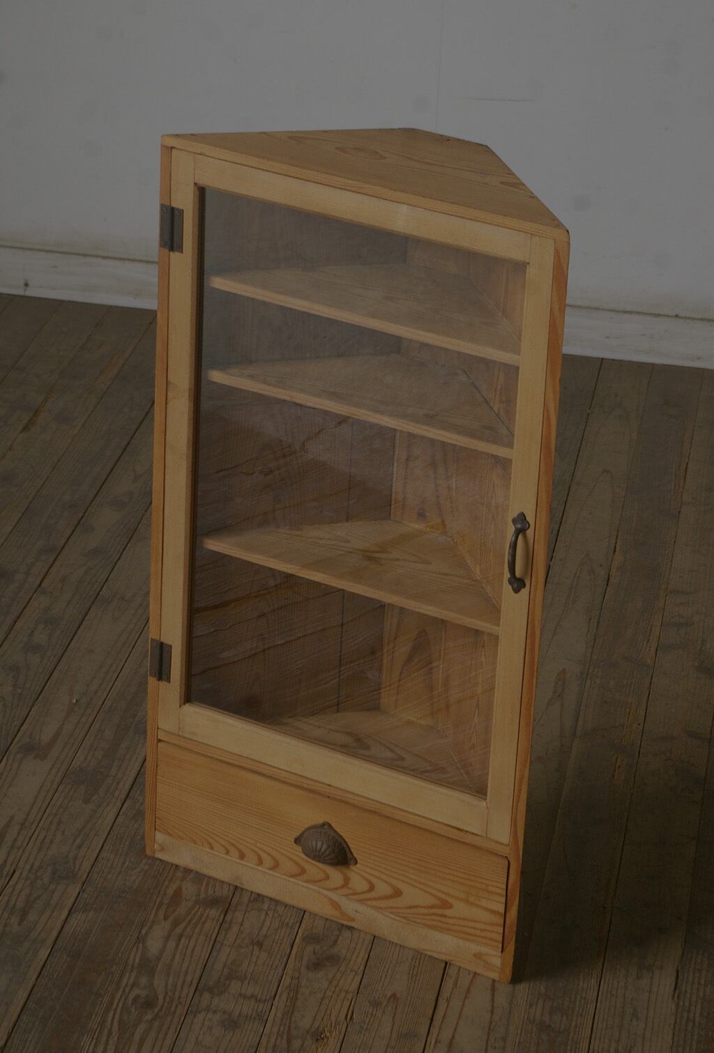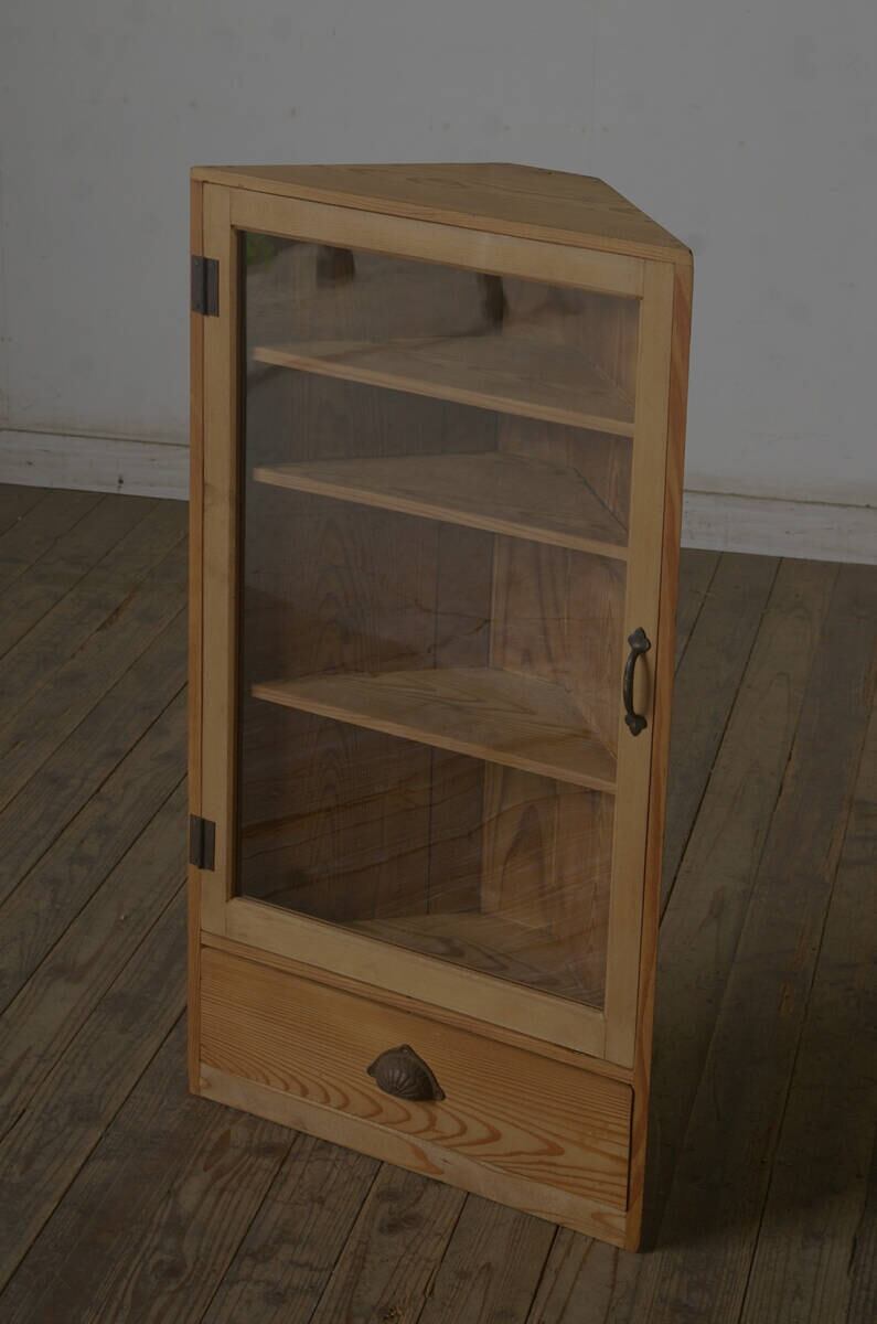 引き出し付きガラス扉古いコーナーキャビネット YZ2597