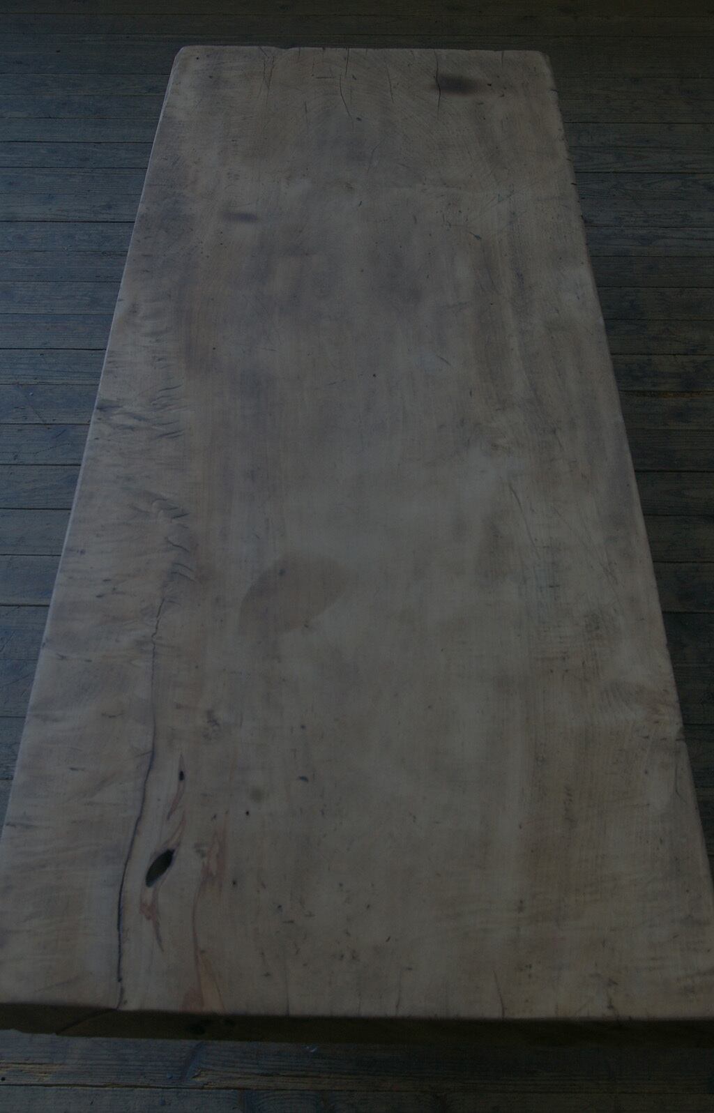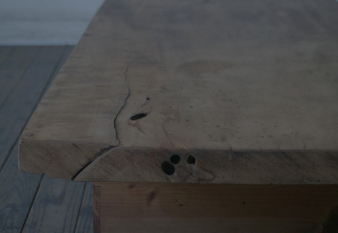 天板には多少の反りと割れがみられます。