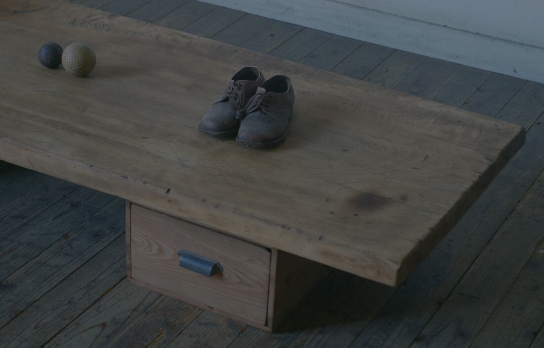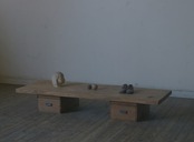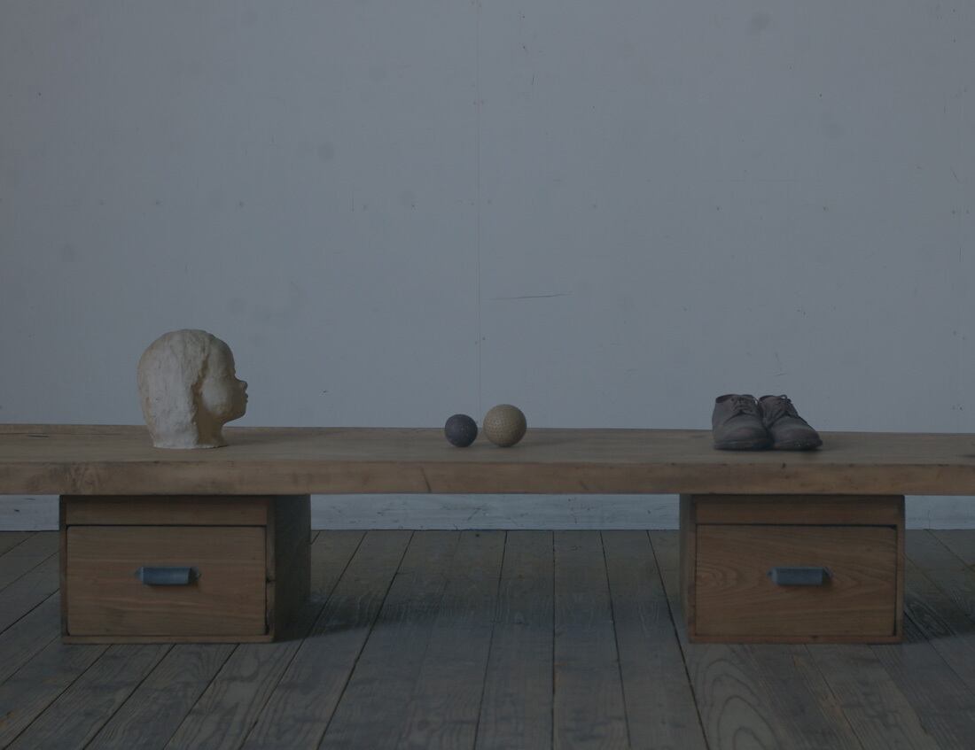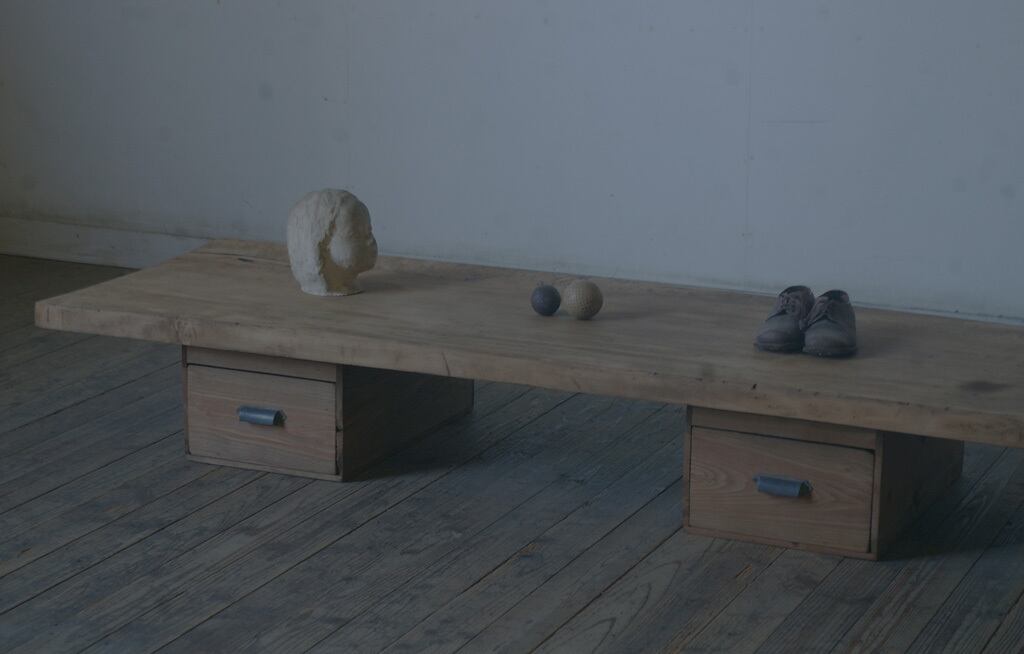 引き出し2台の上に横長の天板が乗る造りになっております。