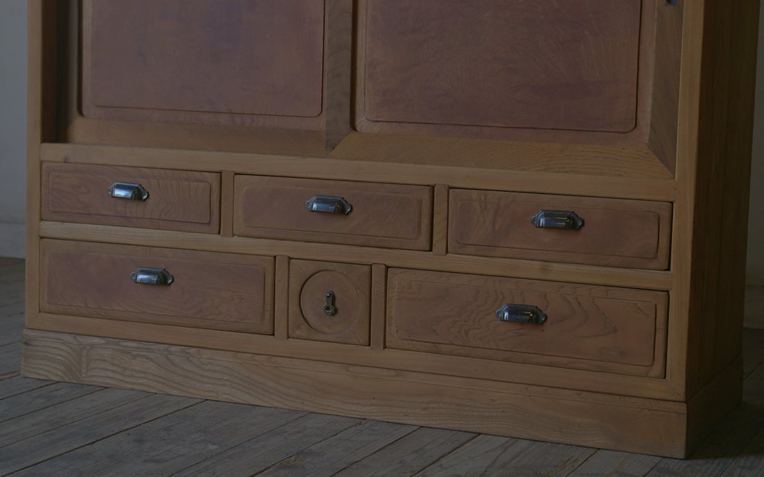 前欅材 引き出し6杯 重ね造りの良い戸棚 YZ2604