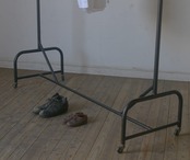 古い洋品店の大きな2連アイアンハンガーラック YZ2616