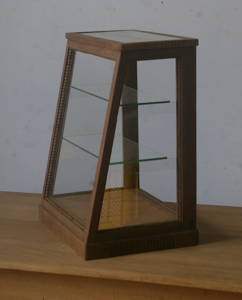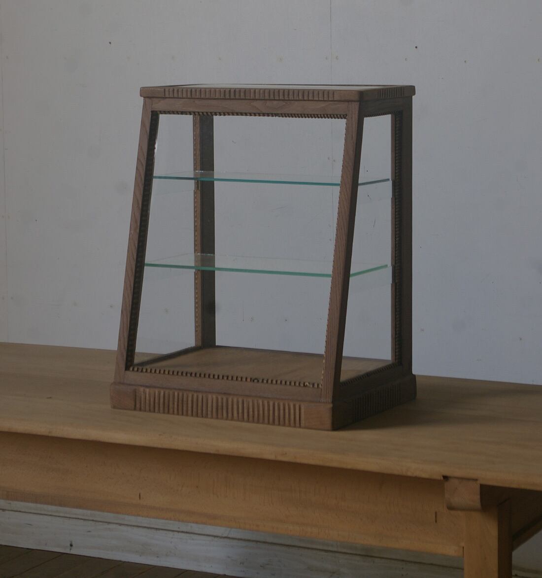 古手前斜め楢材卓上4面ガラスショーケース YZ2605