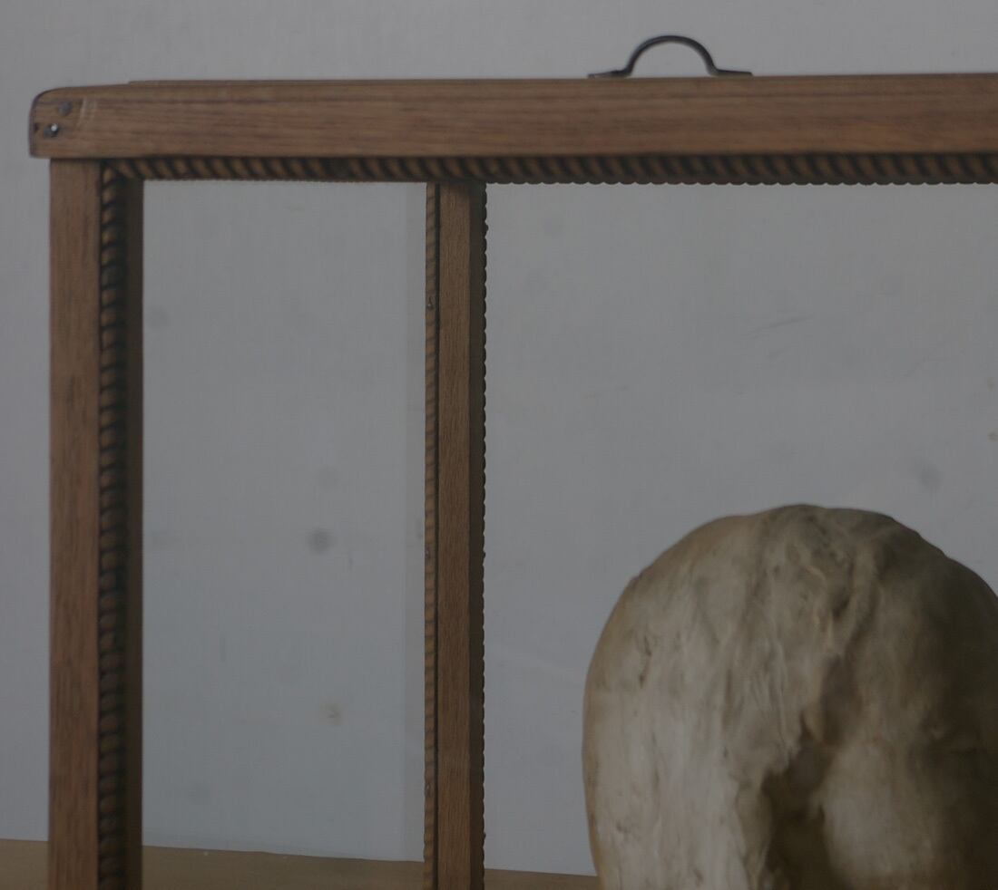 古い楢材枠の綺麗な木目がとても雰囲気の良いアンティーク卓上5面ガラスショーケースです。